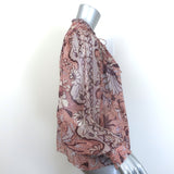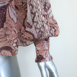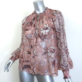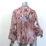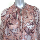 Ulla Johnson Anita Blouse Pink Metallic Floral Print Chiffon Size 8 Tie-Neck Top