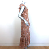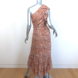 Ulla Johnson Belline Ruffled One-Shoulder Dress Beige Floral Print Silk Size 4