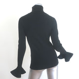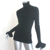 Valentino Bell Sleeve Turtleneck Sweater Black Ribbed Stretch Knit Size Large