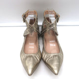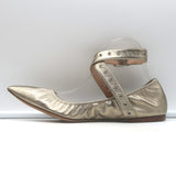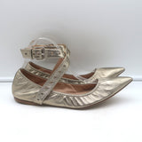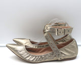 Valentino Love Latch Ankle-Wrap Ballet Flats Gold Metallic Leather Size 38.5