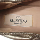 Valentino Love Latch ankle-wrap ballet flats in gold metallic leather, size 38.5 bring designer polish to a classic ballet silhouette, pairing refined Italian construction with a wear-everyday metallic finish.