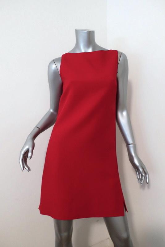 Valentino Mini Dress Red Wool-Silk Crepe Size 2 Boatneck Sleeveless Shift