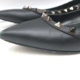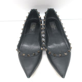 Valentino Noir Rockstud Pointed Toe Ballet Flats Black Leather Size 35.5