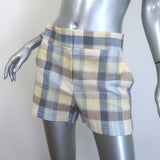 Veronica Beard Allen Plaid Shorts Powder Blue/Yellow Stretch Cotton Size 4
