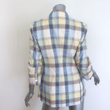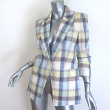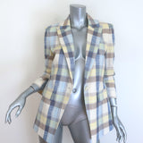 Veronica Beard Clayton plaid dickey jacket in powder blue and yellow (size 6) brings the label’s signature tailored ease to a bright, wearable plaid that transitions beautifully from polished meetings to weekend outings.