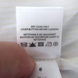 Measurements and care: Shoulders are padded; fabric blend offers gentle stretch. Dry clean recommended. If you’d like exact measurements or additional photos, we can provide them — one available, so please inquire soon.
