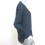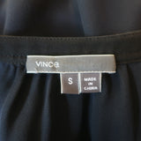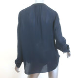 Vince Contrast-Trim Blouse Navy & Black Silk Size Small Long Sleeve Top
