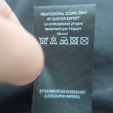 Pre-loved. Suede is slightly yellow along tops of sleeves and shoulders. Small white smudge on center front and some smudging on back...