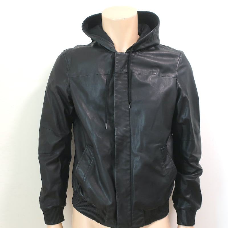 Vince Leather Hooded Bomber Jacket Black Size Medium