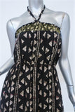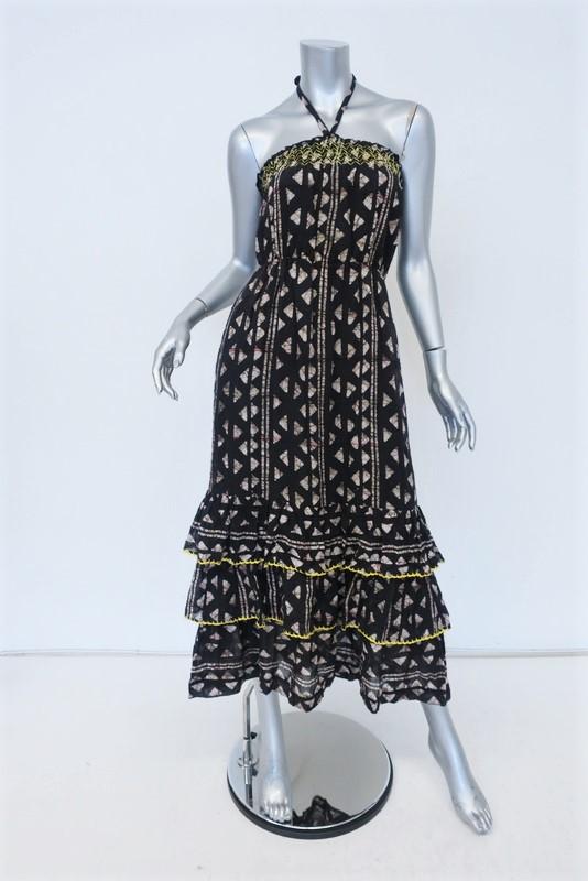 Warm Halter Maxi Dress Black Printed Cotton Size 0 Tiered Embroidered Ruffle-Hem