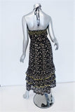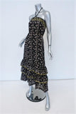 Warm Halter Maxi Dress Black Printed Cotton Size 0 Tiered Embroidered Ruffle-Hem -