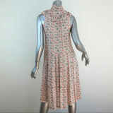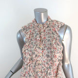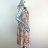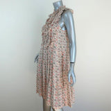 Warm Dress Ecru Palm Tree Print Ruffled Viscose Size 0 Sleeveless Button-Front