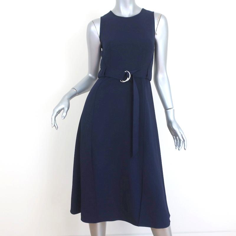 Whistles Midi Dress Navy Crepe US 0 Sleeveless Belted