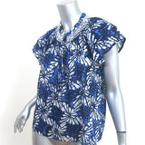 Xirena Top Sumer Blue Batik Print Cotton Size Small Flutter Sleeve Blouse