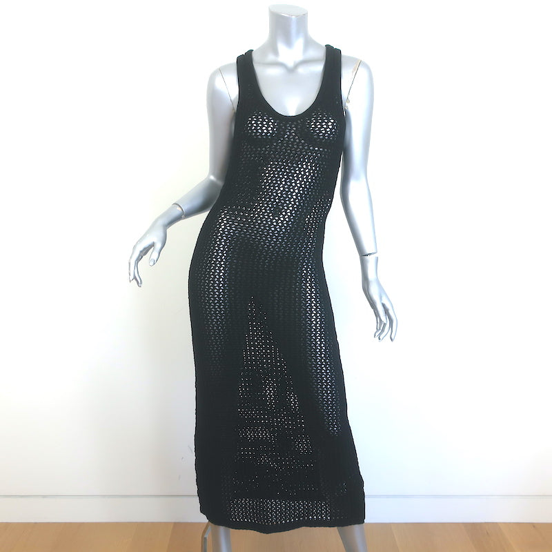 Zadig & Voltaire Nabys Crochet Midi Dress Black Cotton Knit Size Small NEW