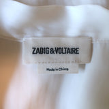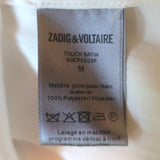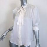 Zadig & Voltaire Touch Tie-Neck Top Cream Satin Size Medium Short Sleeve Blouse