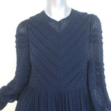 Zimmermann Swiss Dot Pleated Midi Dress Navy Georgette Size 1