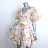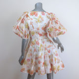 Zimmermann Tranquility Flip Puff Sleeve Mini Dress Cream Floral Print Size 0
