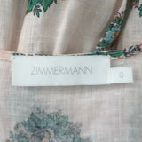 Zimmermann Verity Puff Sleeve Midi Dress Light Pink Floral Print Linen Size 0