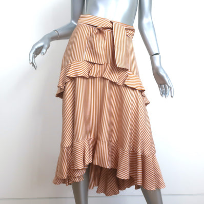 Zimmermann Ruffled Midi Skirt Gold/Light Pink Striped Satin Twill Size 1