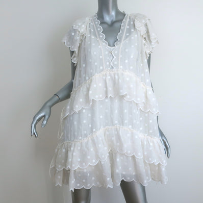 Zimmermann Ruffled Mini Dress Mae White Polka Dot Embroidered Ramie Si...