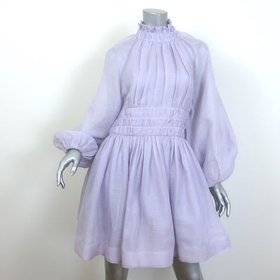 Zimmermann Luminous Open-Back Mini Dress Lilac Linen-Silk Size 3