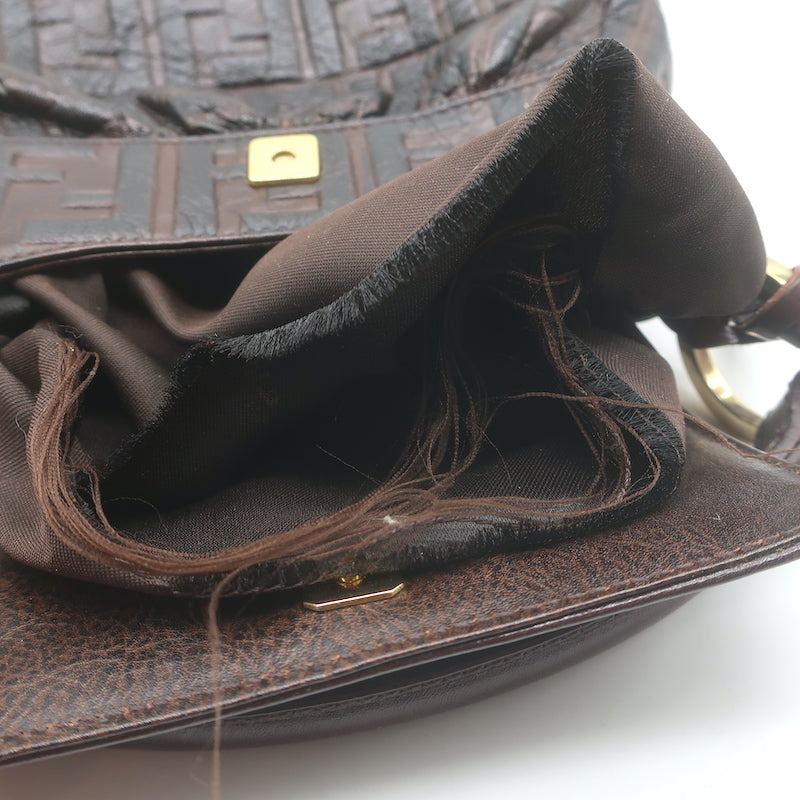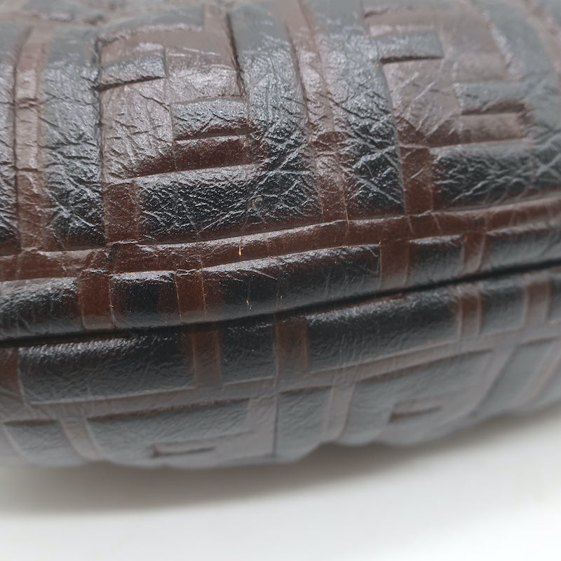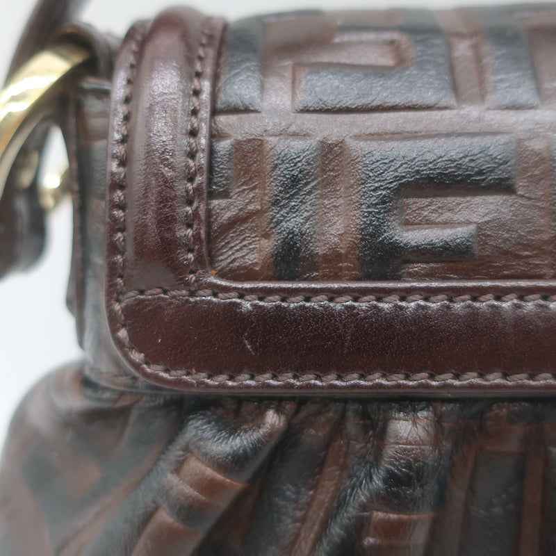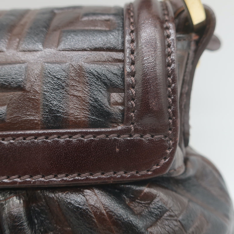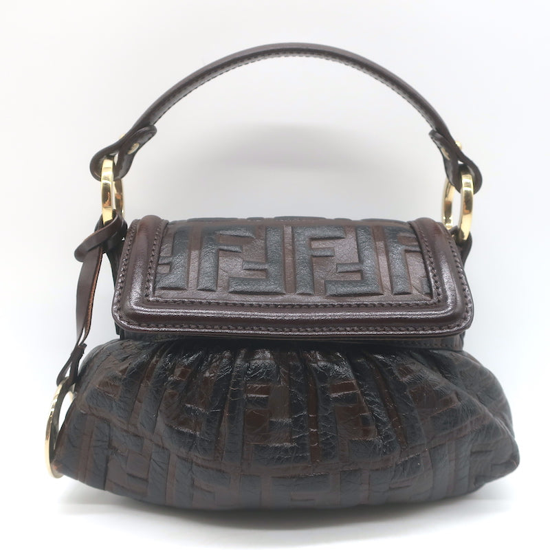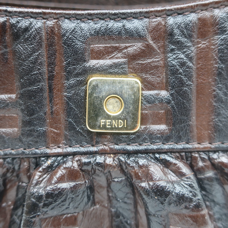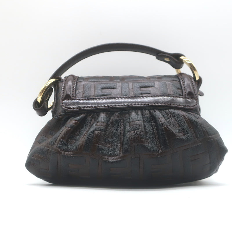 Fendi FF Zucca-Embossed Mini Chef Bag Dark Brown Leather