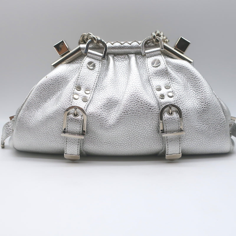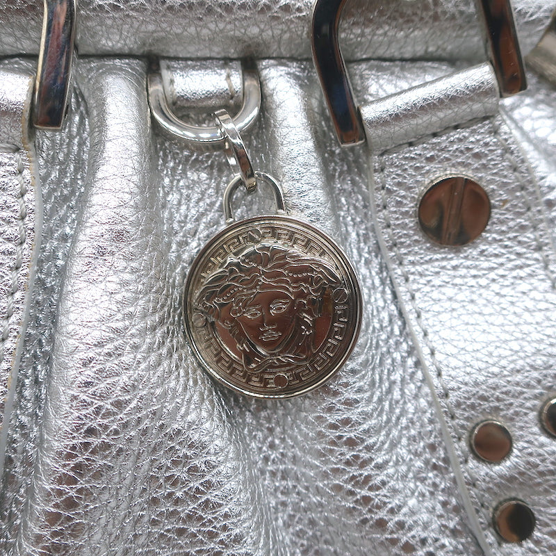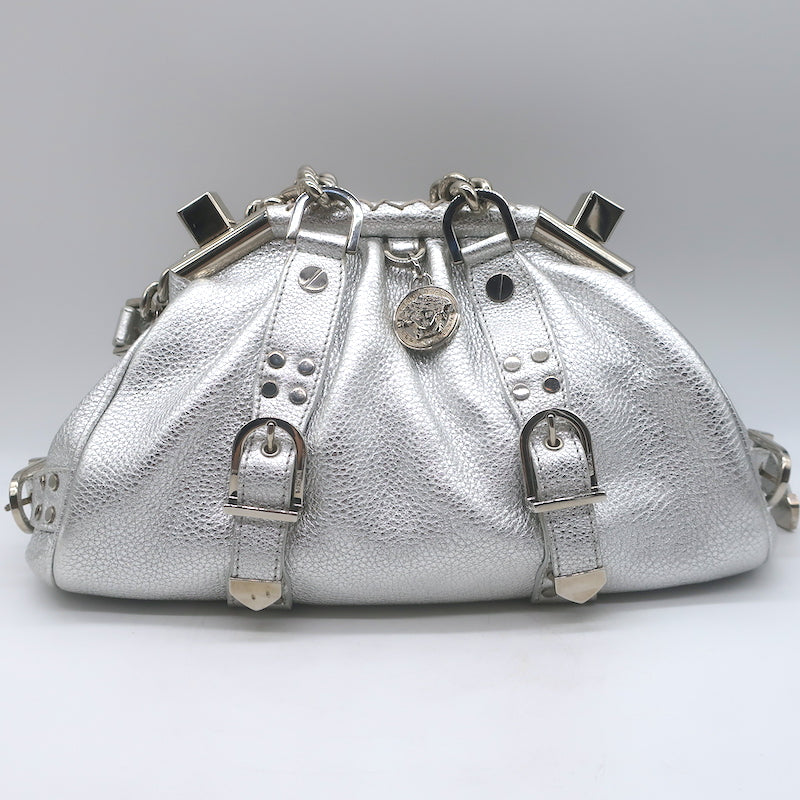 Versace Small Madonna Chain-Strap Frame Bag Silver Metallic Leather Measurements