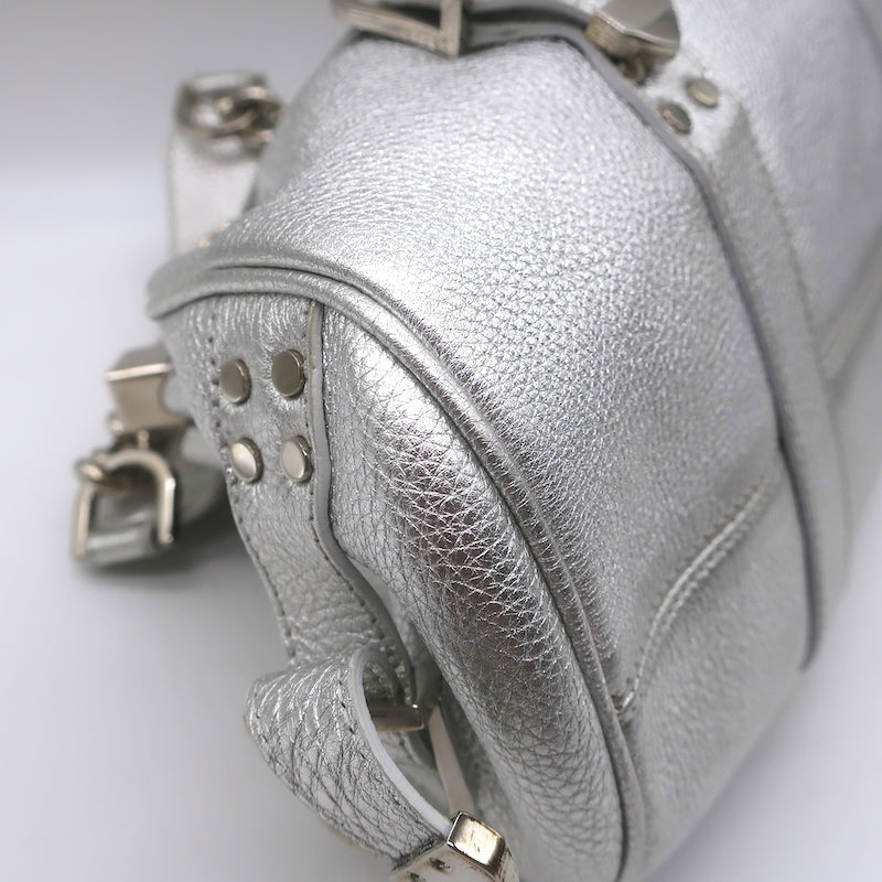 Gently used. Great condition. No major wear to speak of, tiny spot of wear on back top left corner. Light scratching and some tarnish on hardware. Comes with dust bag.