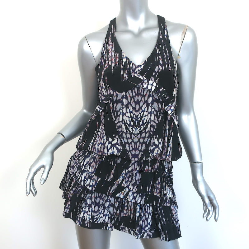 IRO Sleeveless Tiered Mini Dress Frigye Black Printed Silk Size 36