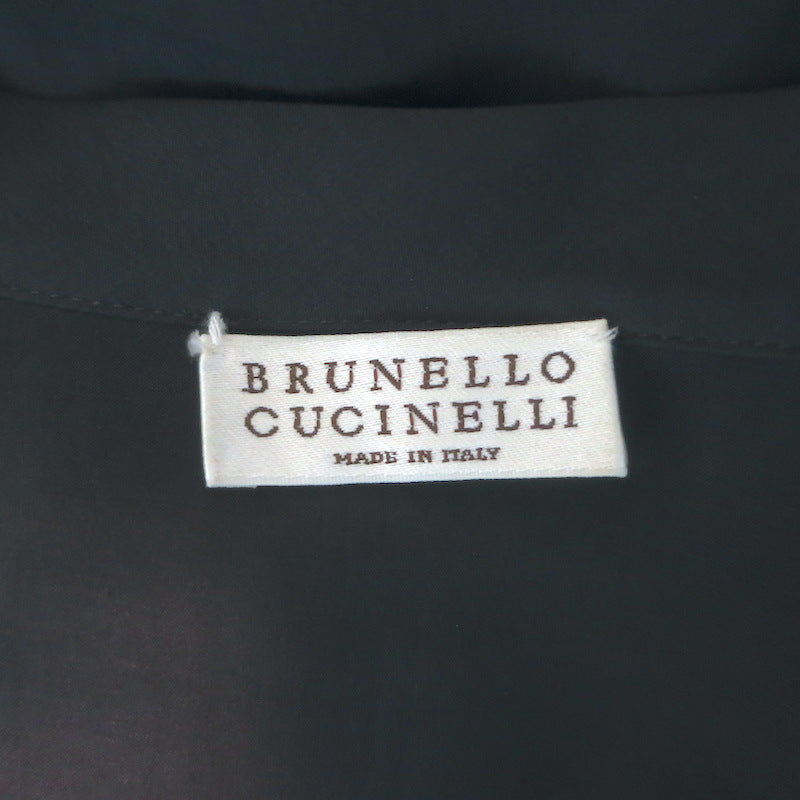 Brunello Cucinelli Monili-Trim Popover Blouse Cream Stretch Silk Size ...