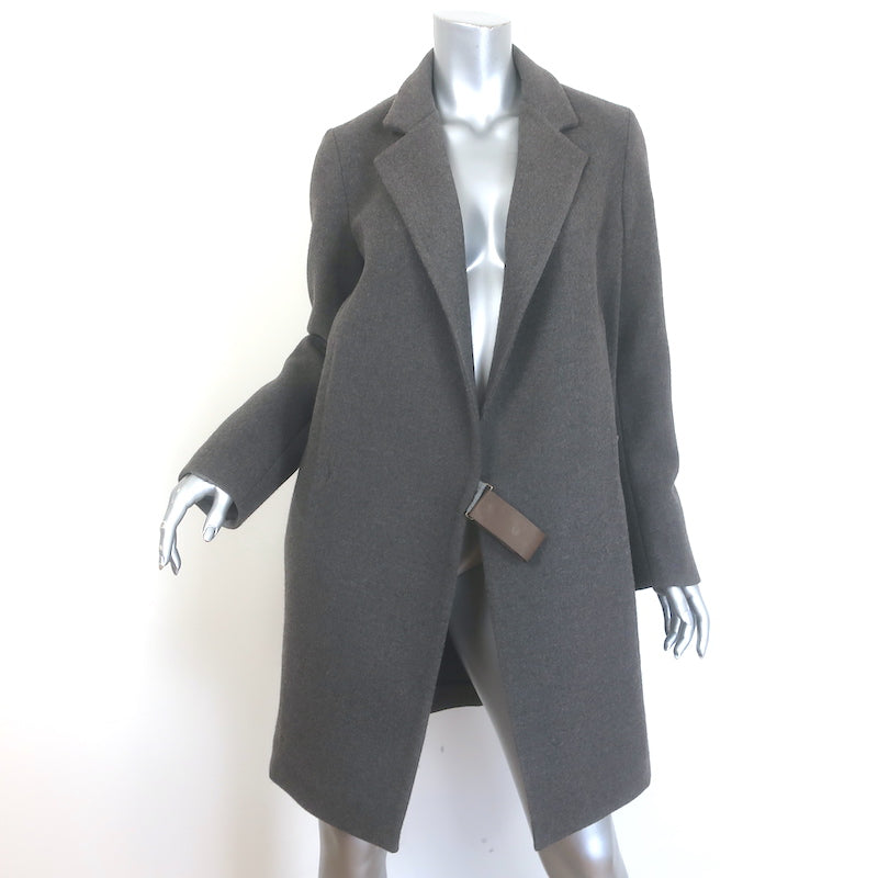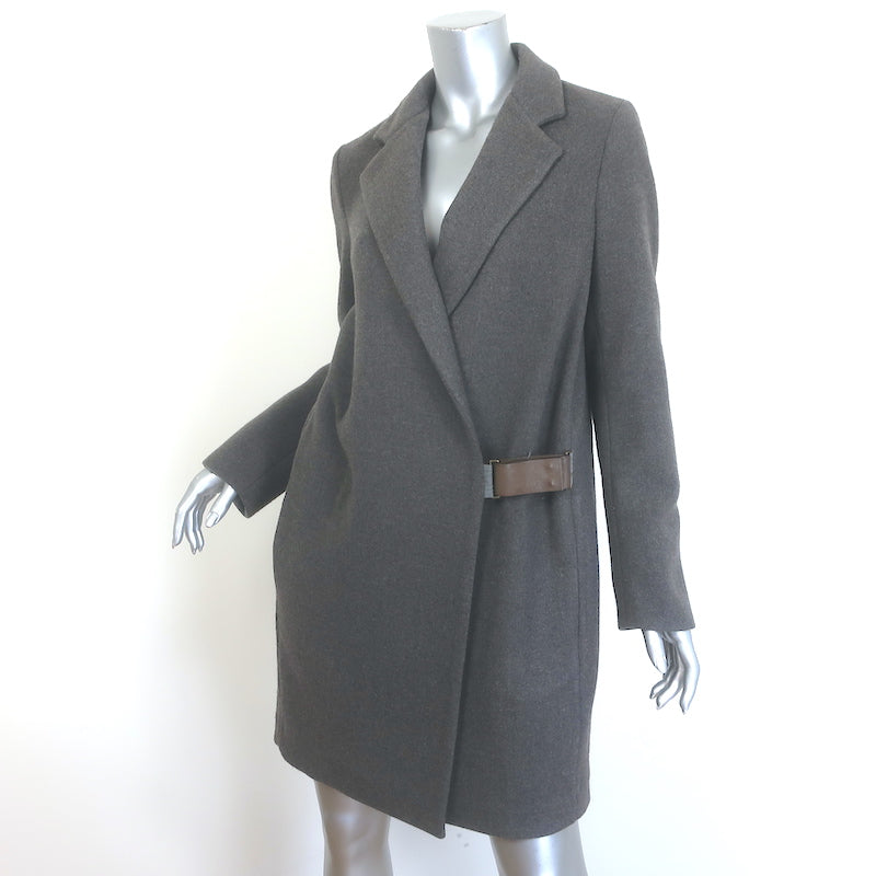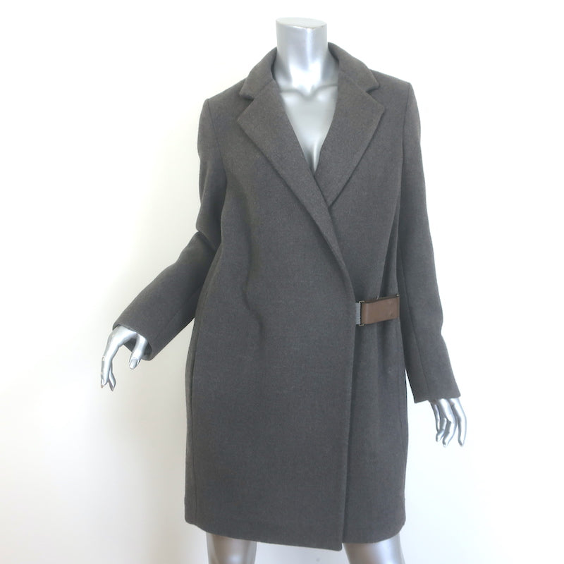 Brunello Cucinelli Leather-Buckle Coat Anthracite Wool-Cashmere Size 40