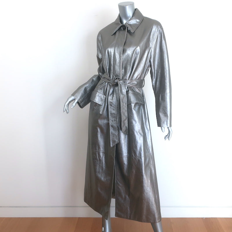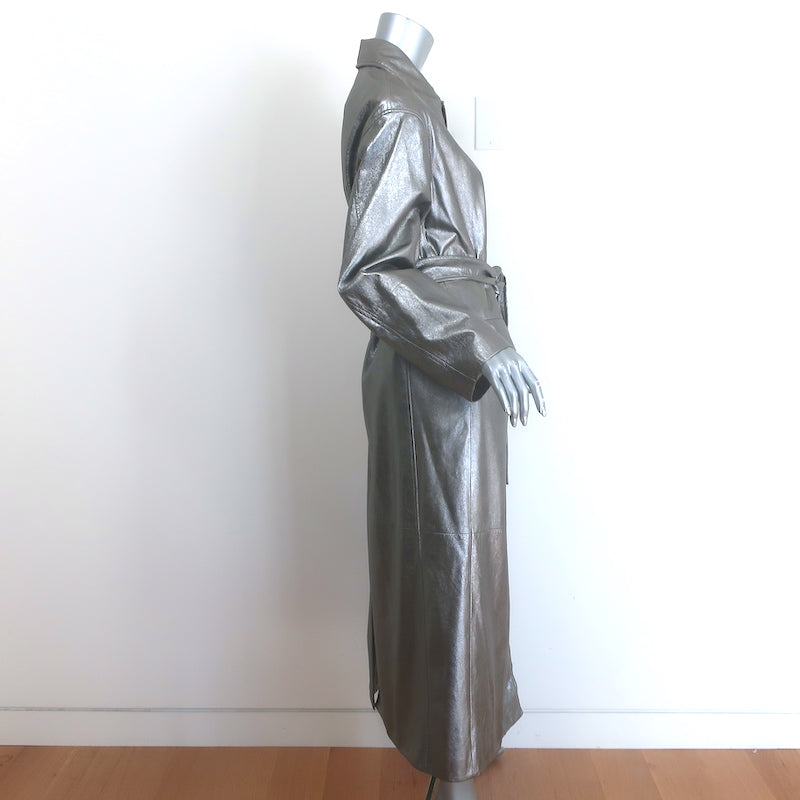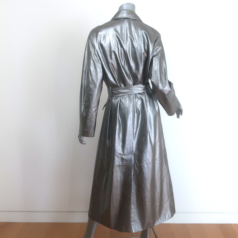 Brunello Cucinelli Metallic Leather Monili-Detail Trench Coat Silver Size 40
