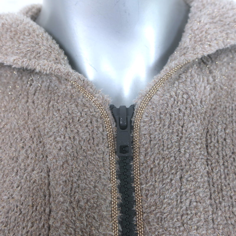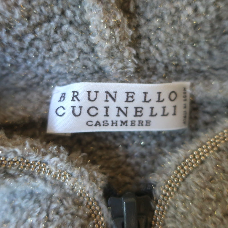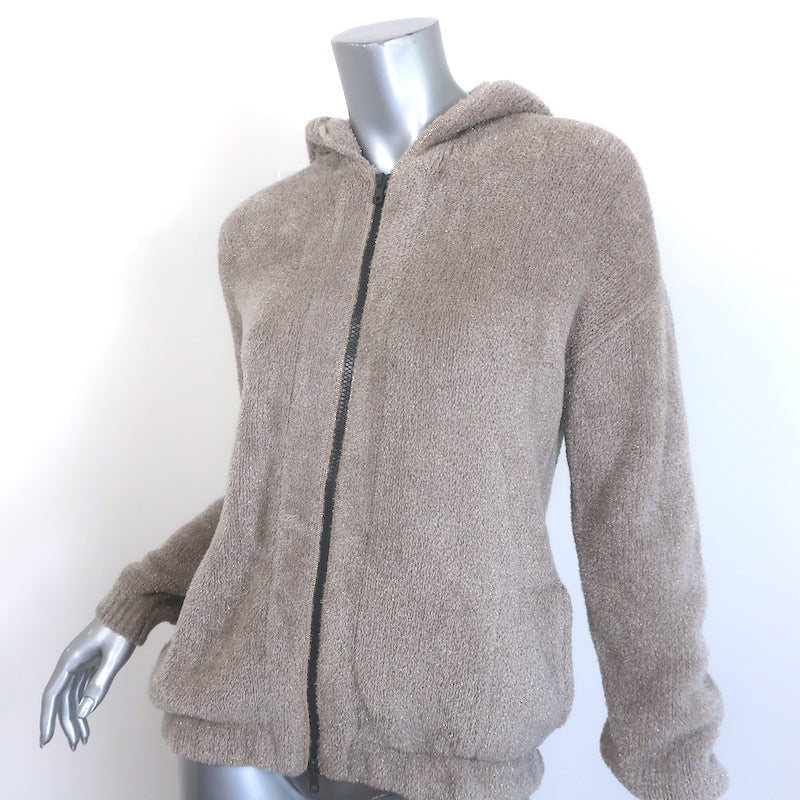 Brunello Cucinelli Cashmere Monili-Trim Metallic Plush Knit Hoodie Taupe Size 12