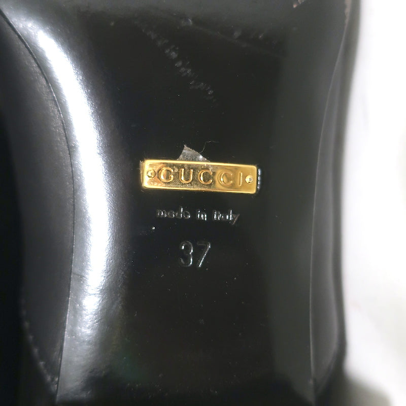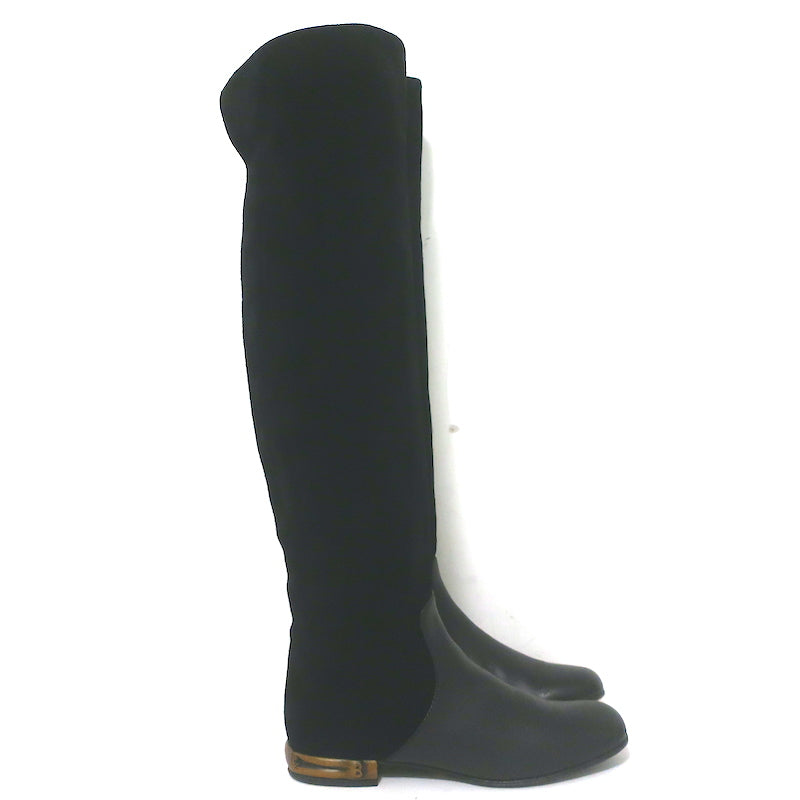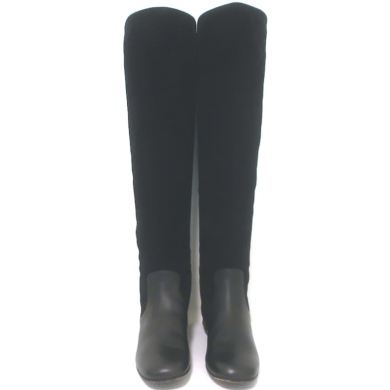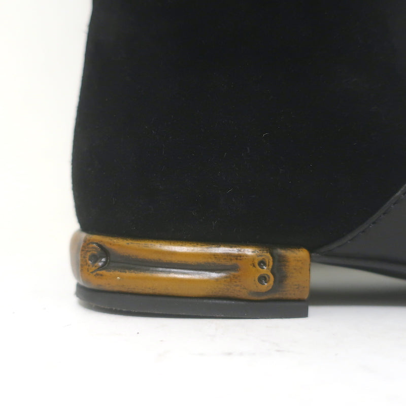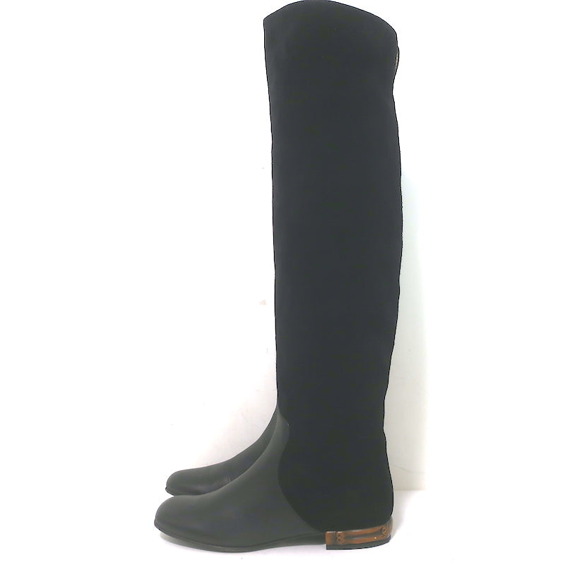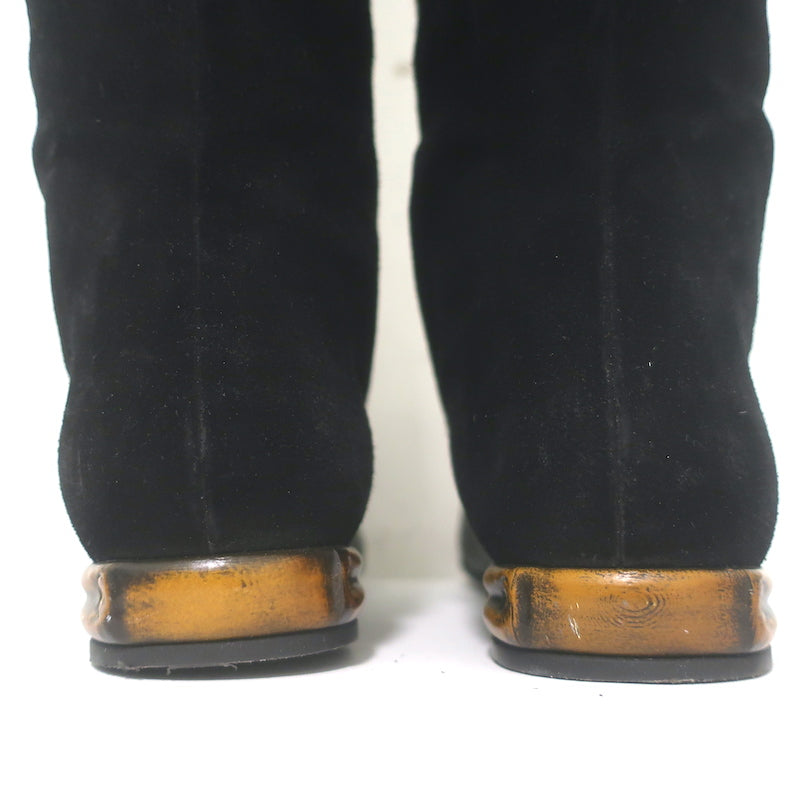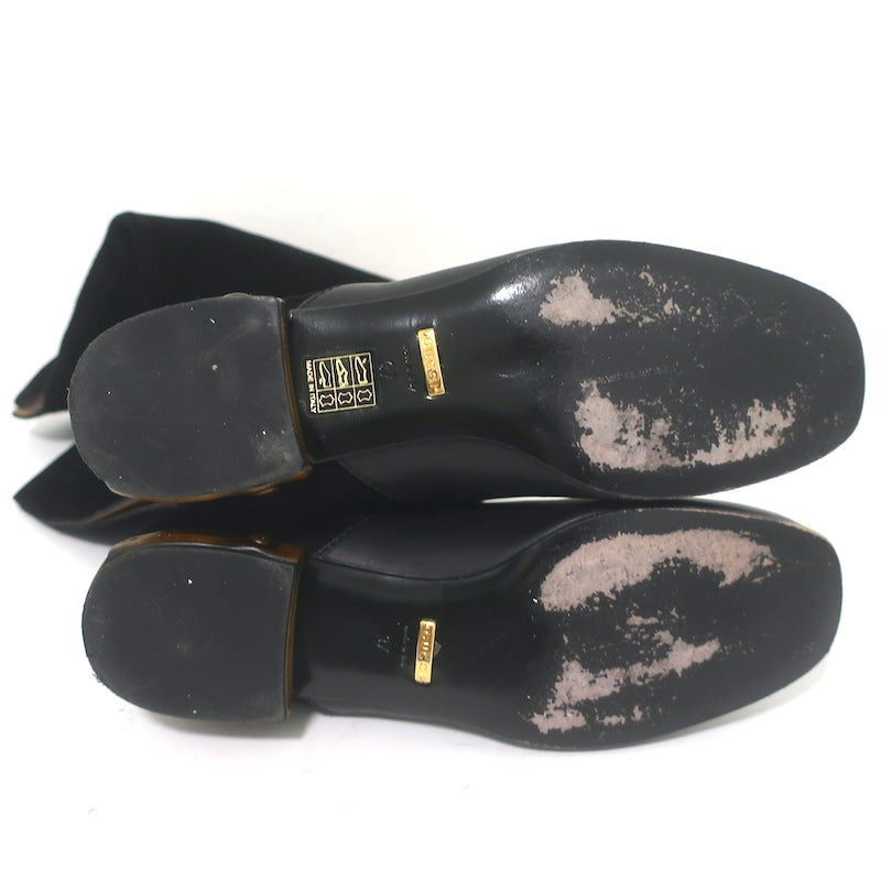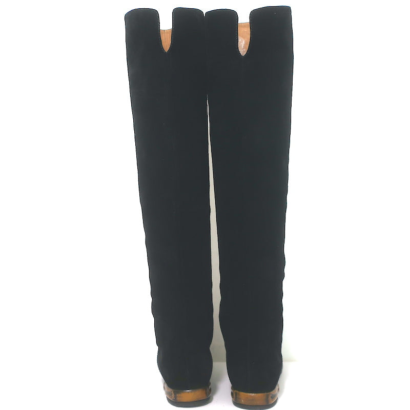 Gucci Lucille Bamboo-Heel Knee High Boots Black Suede & Leather Size 37 Measurements
