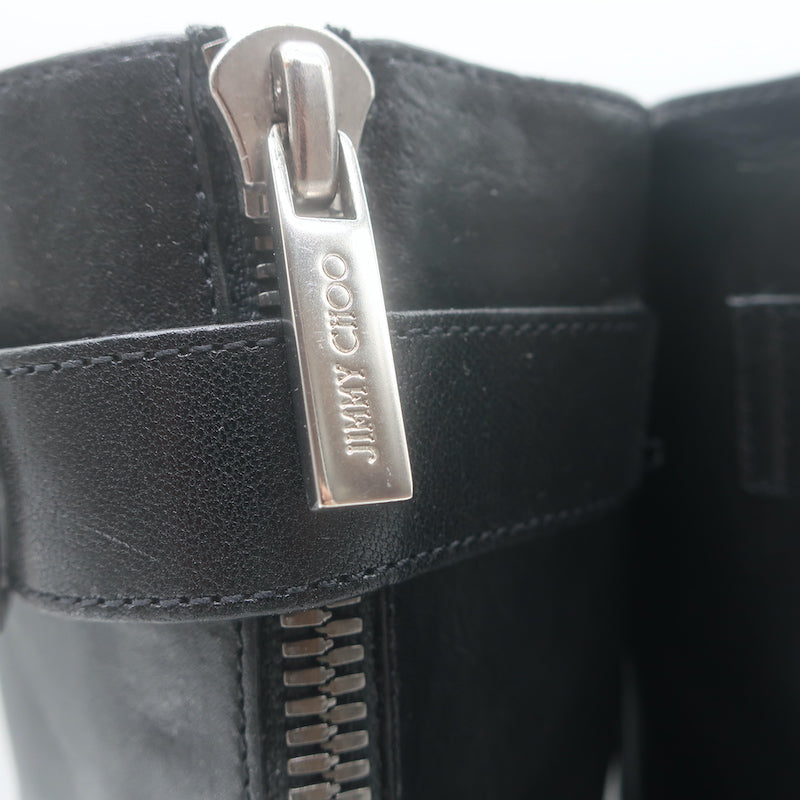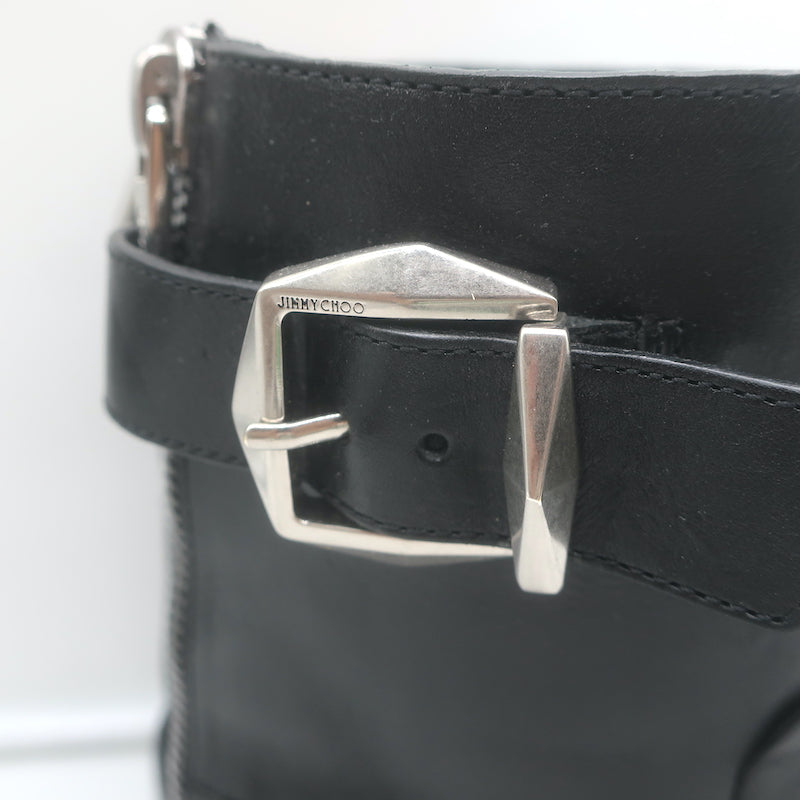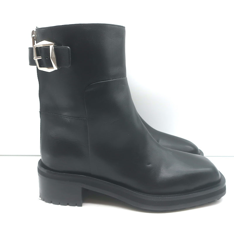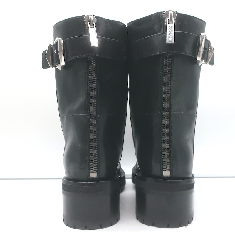 Jimmy Choo Brooklyn Moto Boots Black Leather Size 38.5