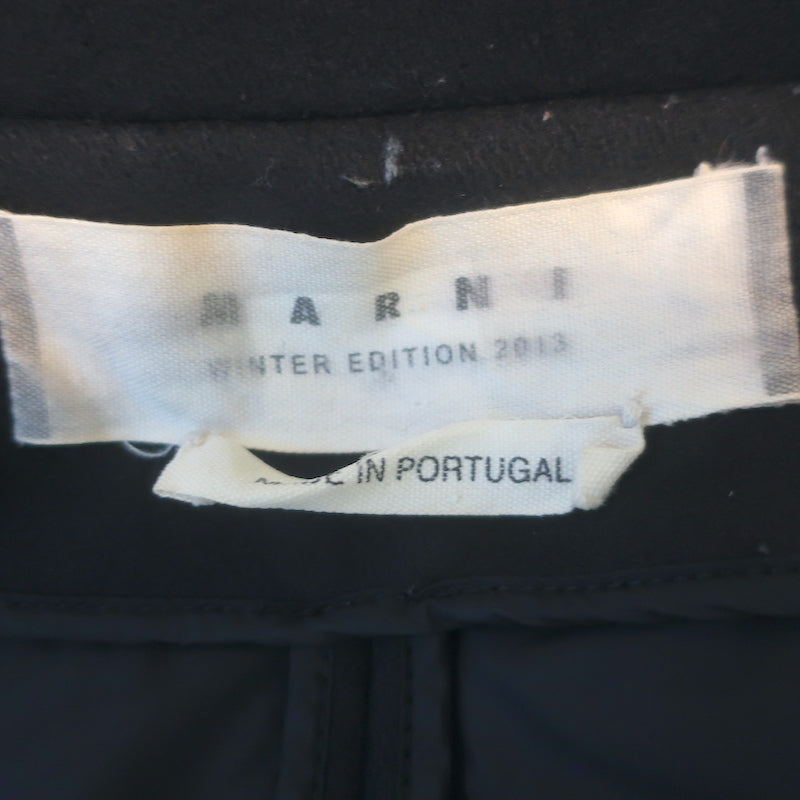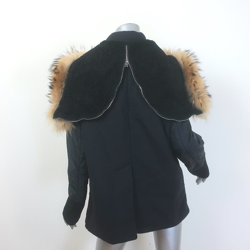 Marni Fur-Trimmed Hooded Mixed Media Coat Black Wool & Nylon Size 46