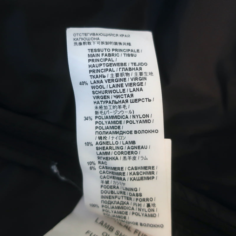 40% wool, 34% nylon, 10% lamb shearling, 10% racoon fur, 6% cashmere