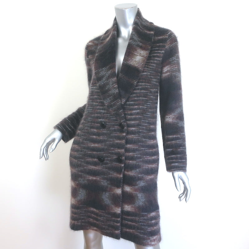 Missoni Space Dye Brushed Mohair Double Breasted Coat Black/Brown Size 38