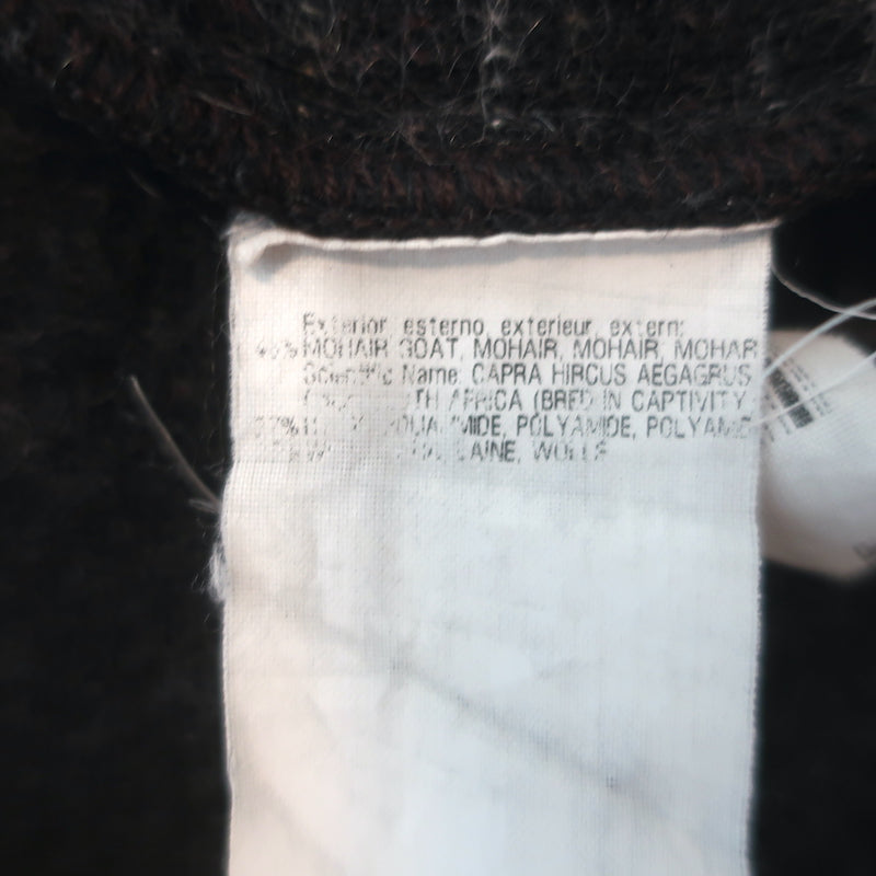 This pre-owned piece showcases the hallmarks of Missoni’s celebrated knitwear—subtle color variation from space-dye finishing, expert construction, and an unmistakable Italian sensibility. The brushed mohair surface gives the coat a warm, lightweight loft and a refined, slightly fuzzy finish that reads both cozy and elegant. Finished as a double-breasted coat, it balances structure and softness for polished layering across cooler seasons.