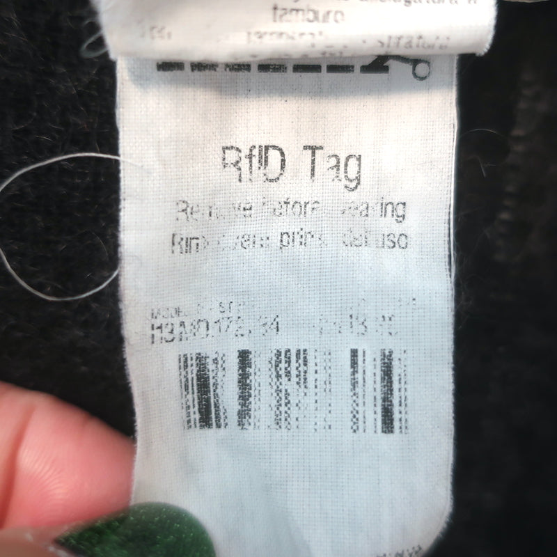 Pre-loved. 2 small brown smudges on upper right sleeve may come out with cleaning. 2 white spots on front and back of...