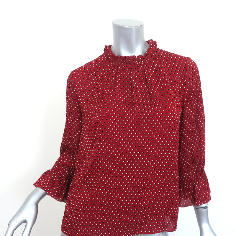 FRAME Blouse Brooke Red Heart Print Silk Size Small Ruffle Sleeve Top Measurements