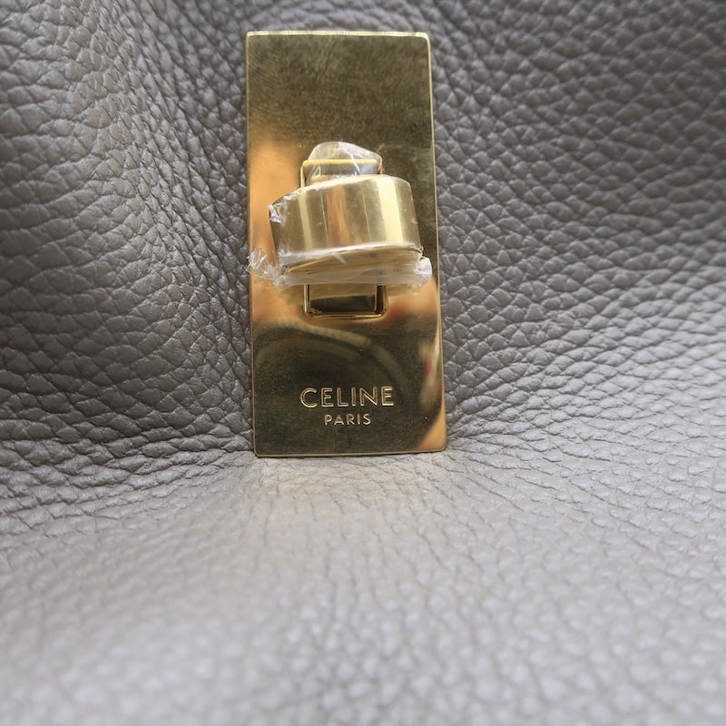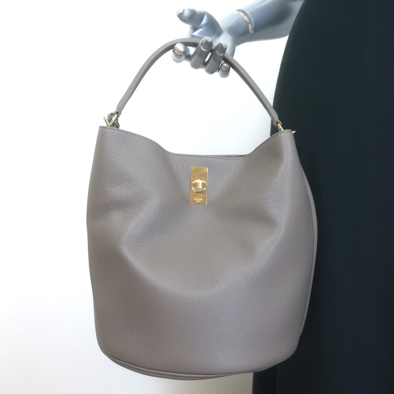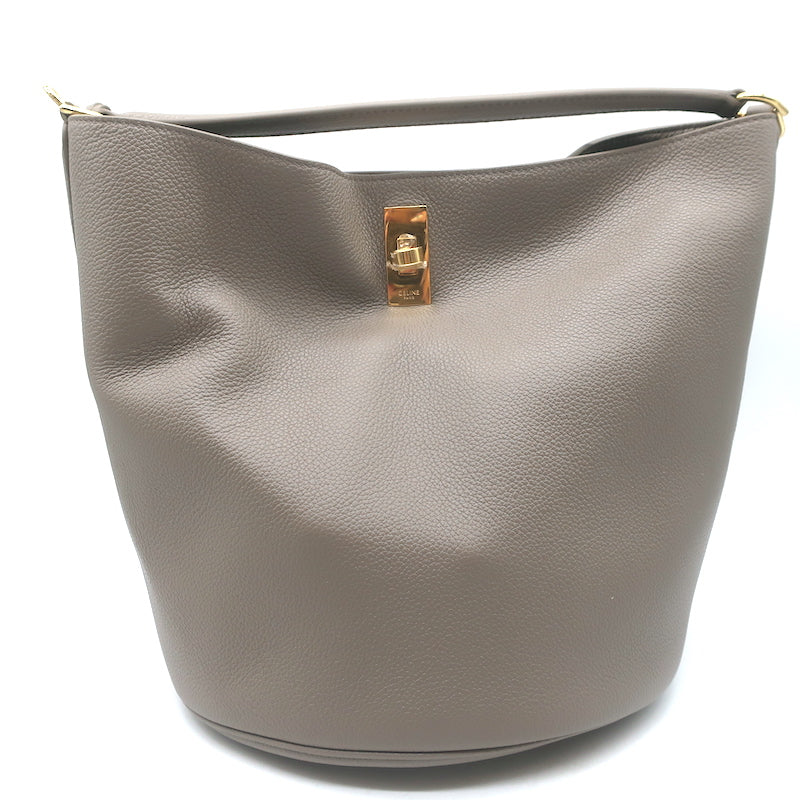 Celine Bucket 16 Bag Taupe Grained Leather Crossbody NEW