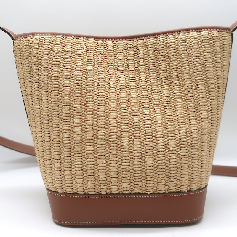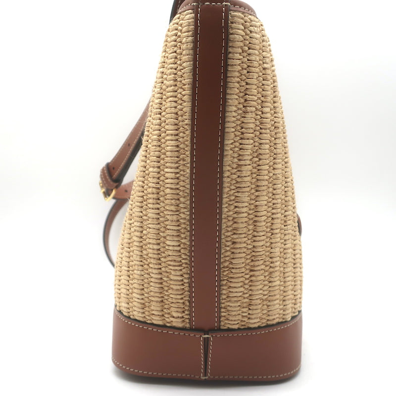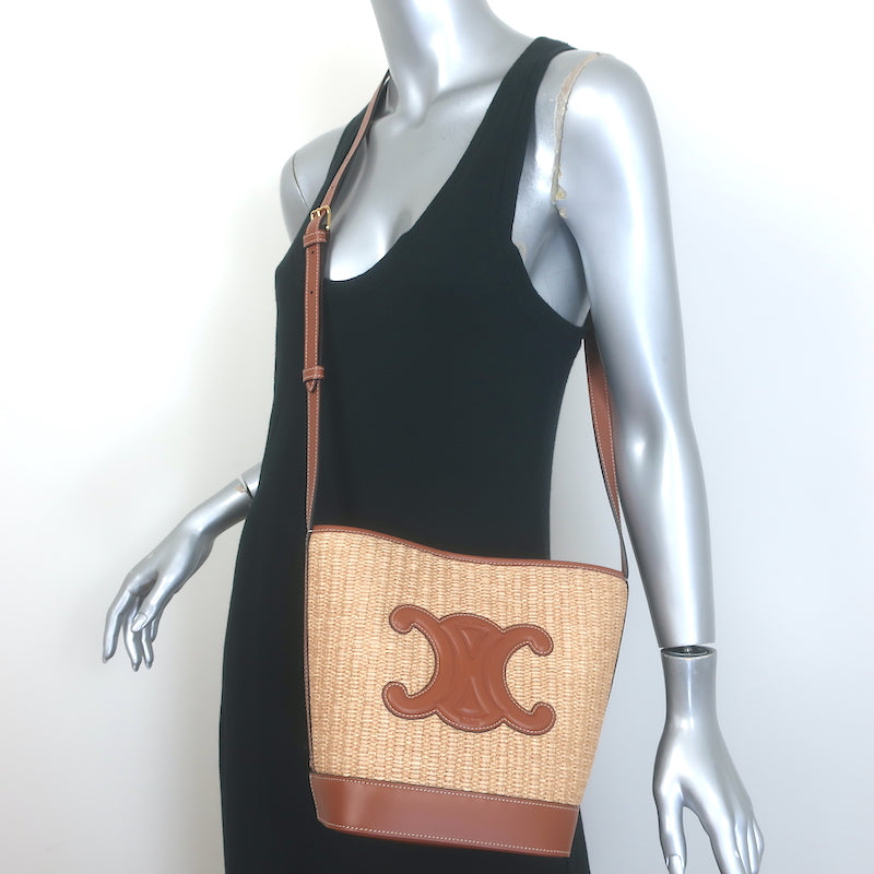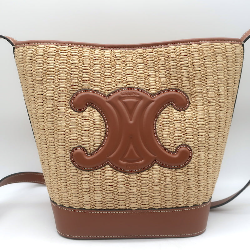 Celine Raffia Triomphe Small Bucket Bag Brown Leather-Trim Crossbody