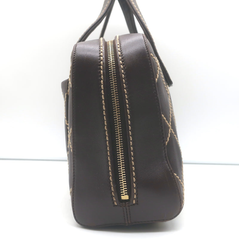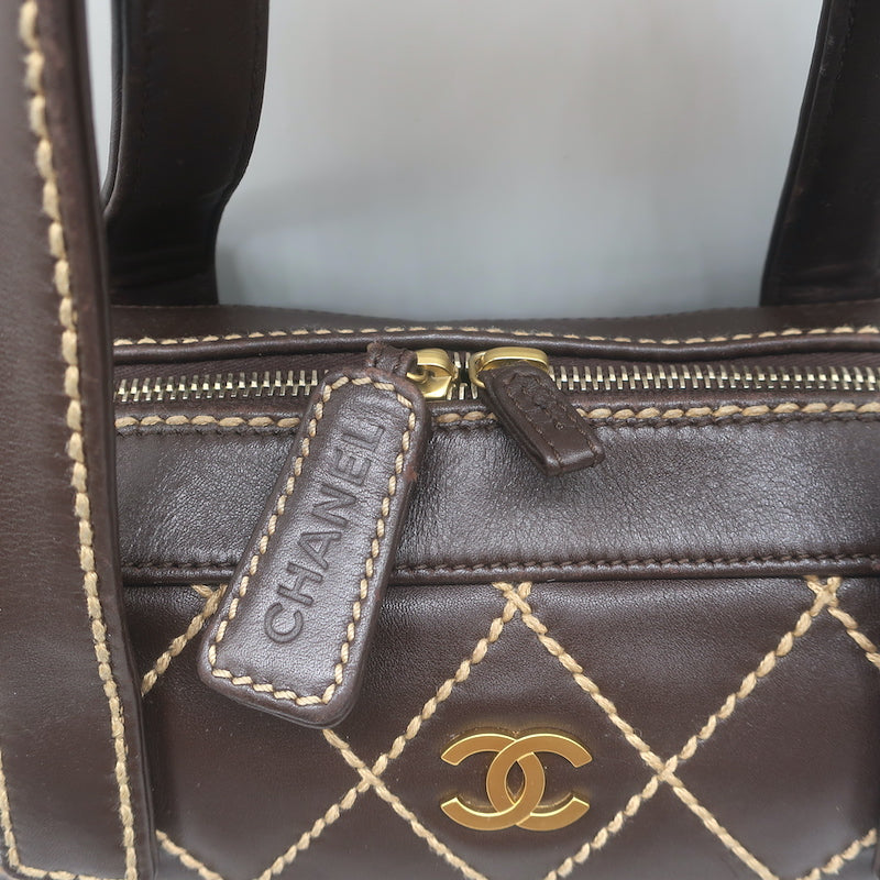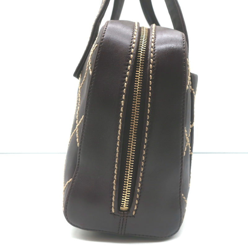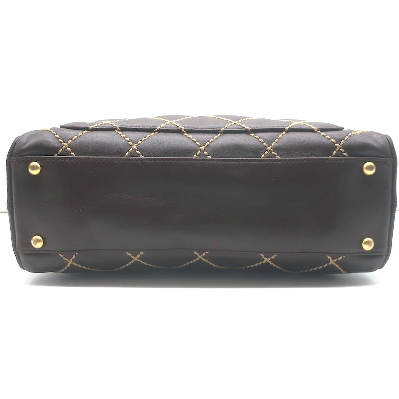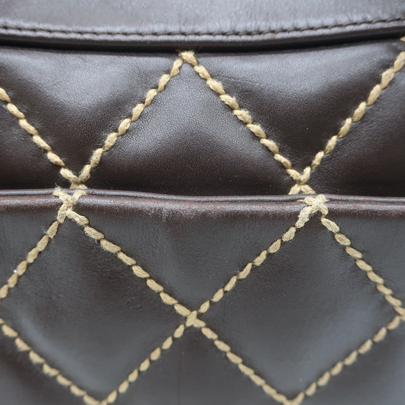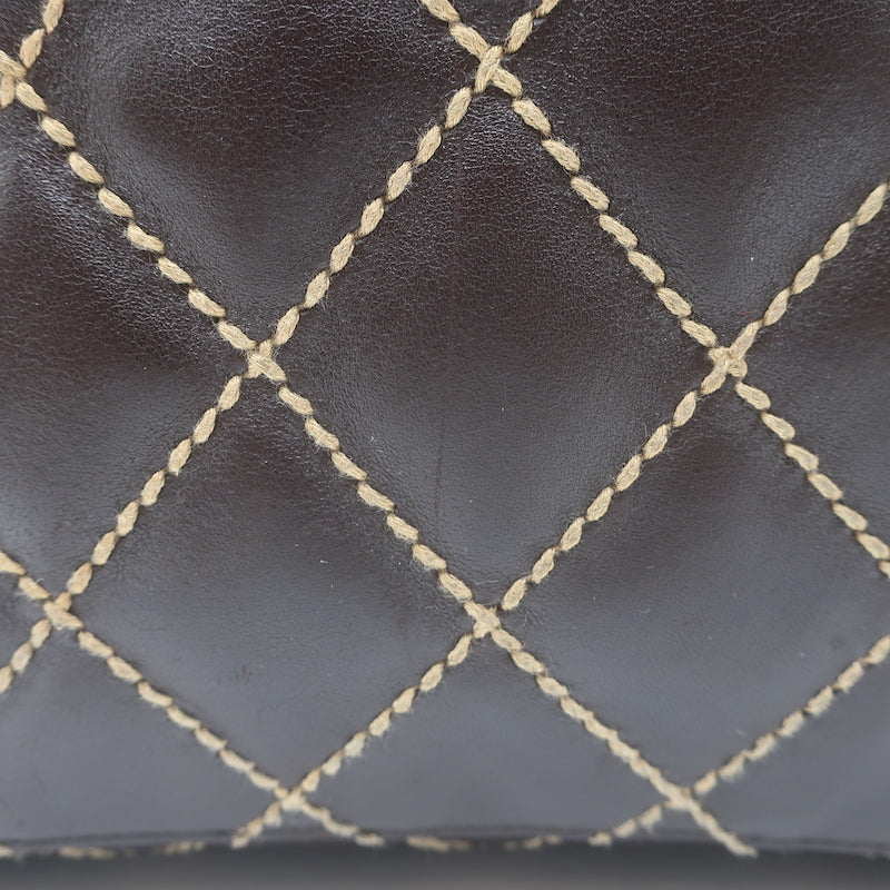 Chanel 2003 Surpique Wild Stitch Quilted Small Tote Bag Dark Brown Leather