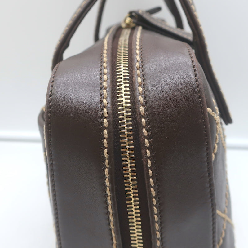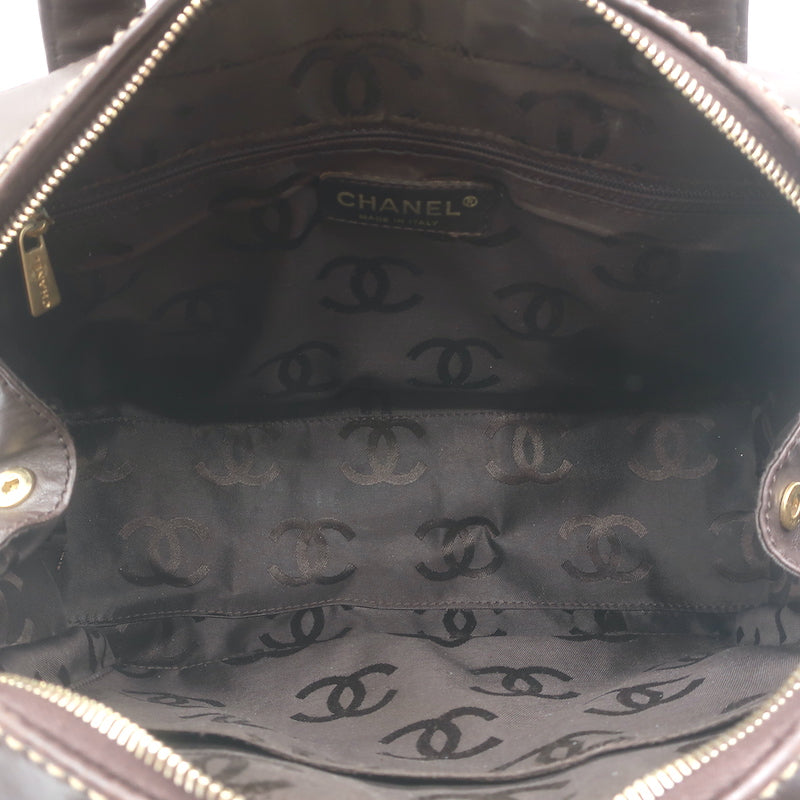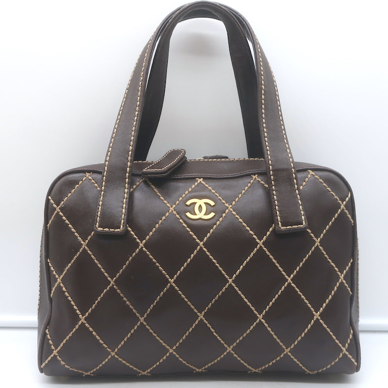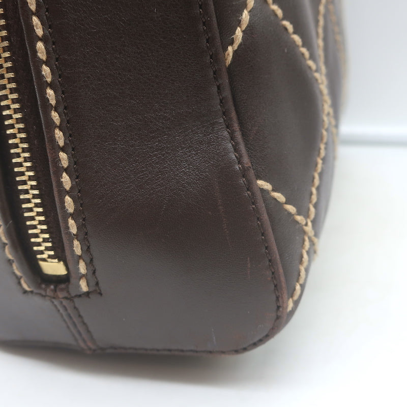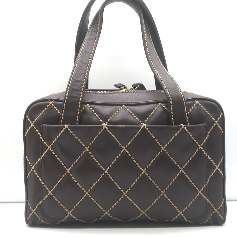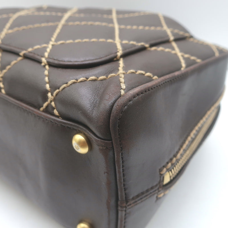 Chanel 2003 Surpique Wild Stitch Quilted Small Tote Bag Dark Brown Leather