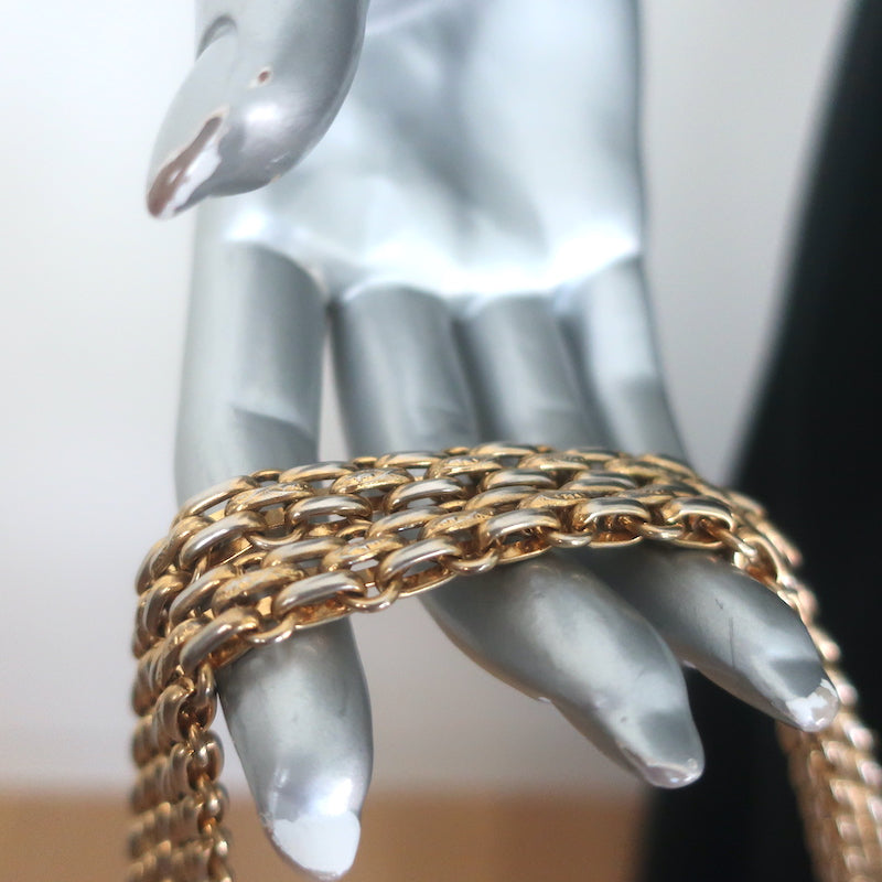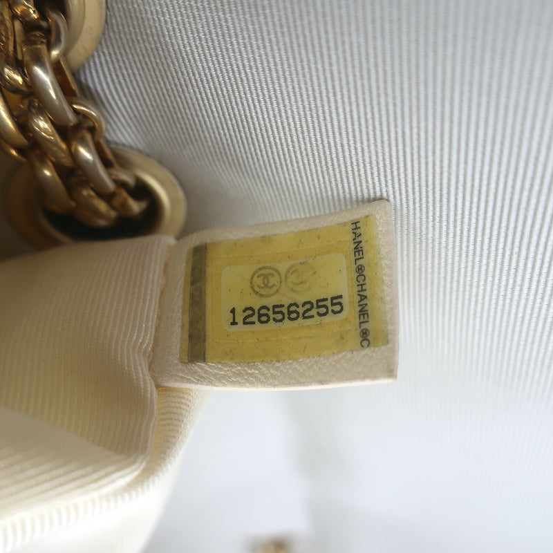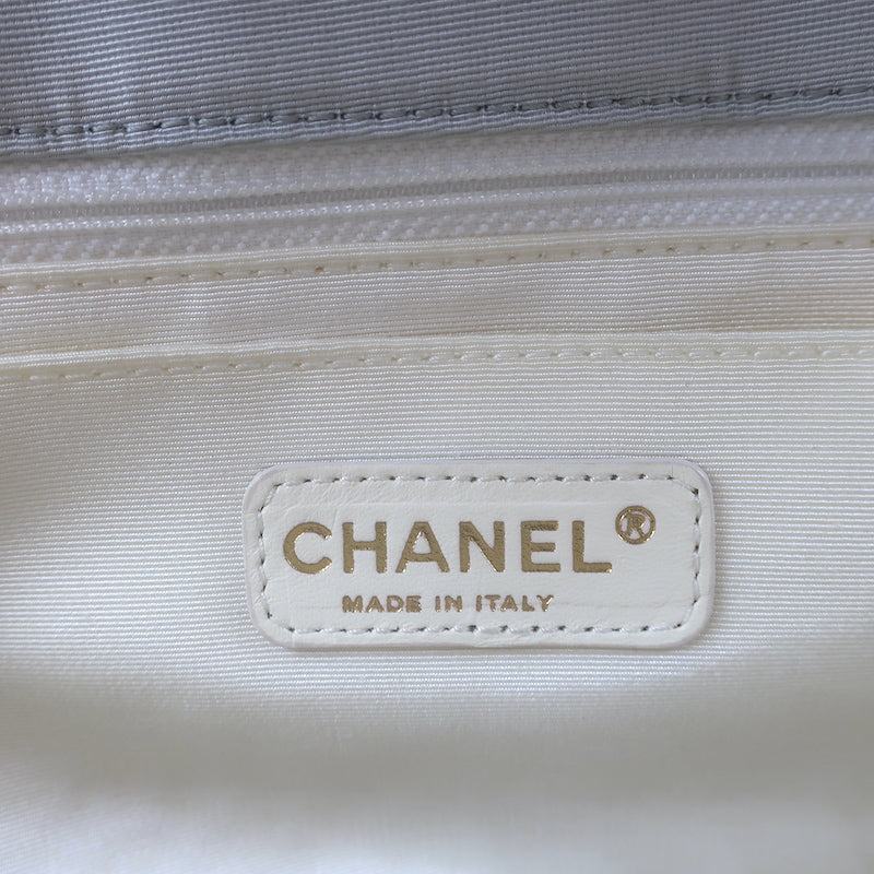 Chanel 2010 VIP Large Chain Strap Quilted Shoulder Bag Beige & Black L...