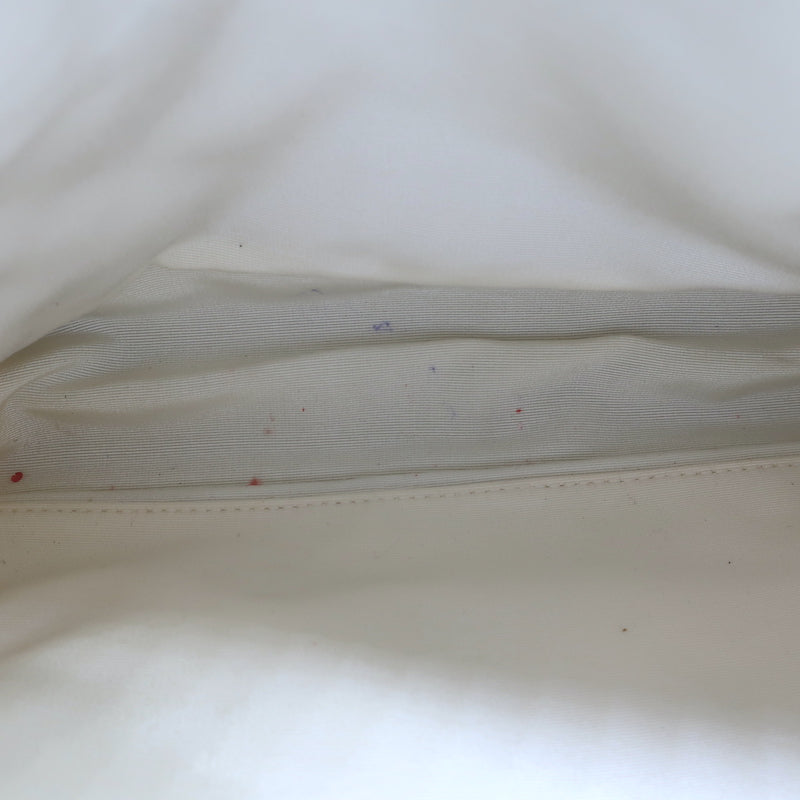 Gently used. Good condition. No major flaws, some very faint brown smudging on white stitching. Smudges on lining. White smudge on back...
