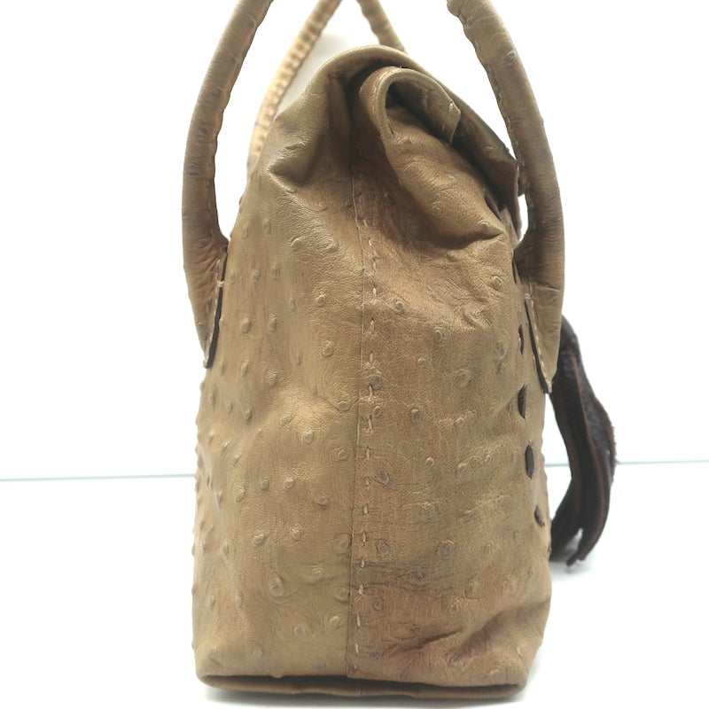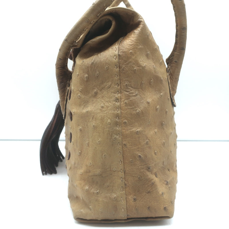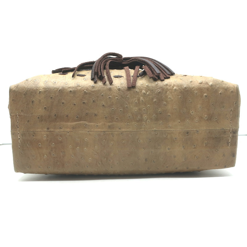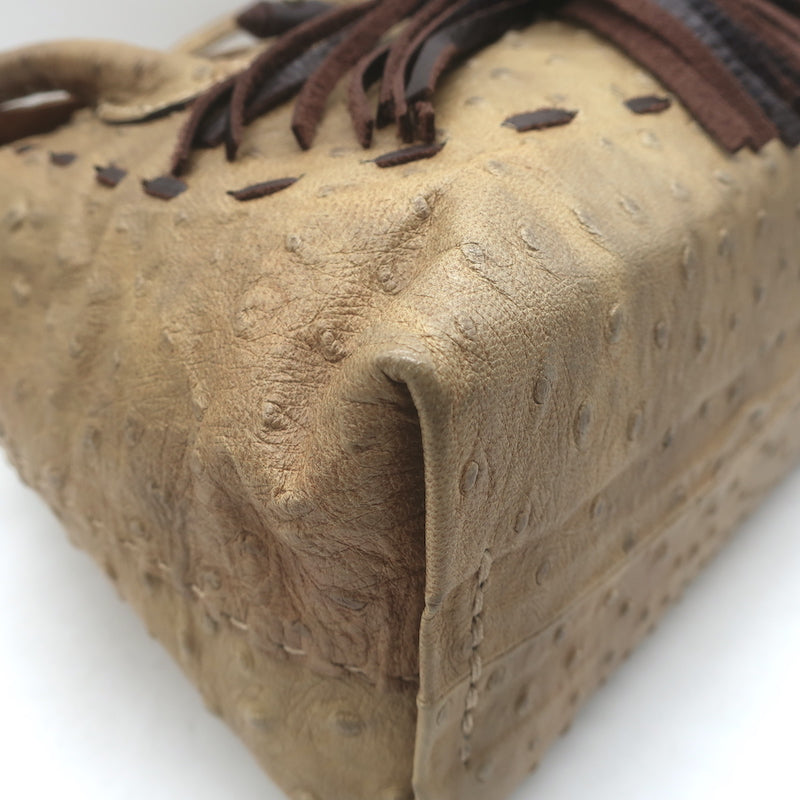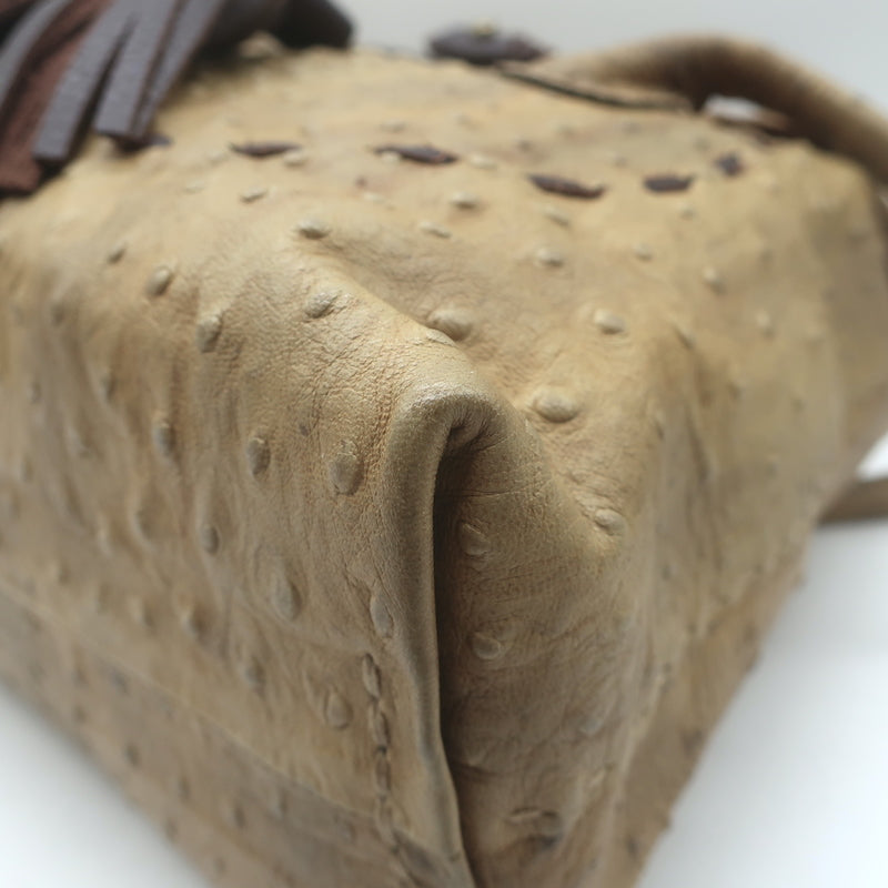 Henry Beguelin Ostrich Small Fringe Flap Bag Olive