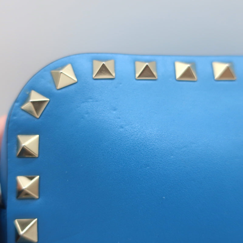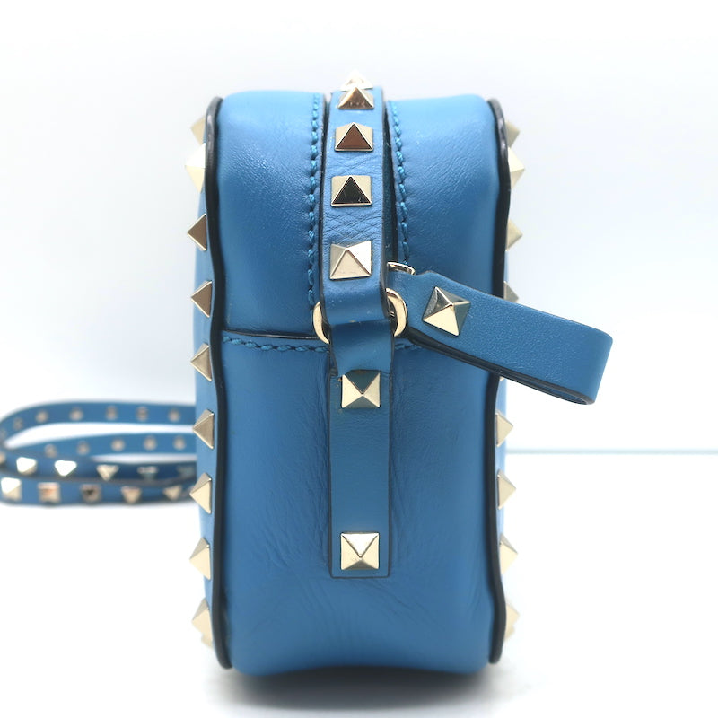 Valentino Rockstud Camera Bag Blue Leather Small Crossbody